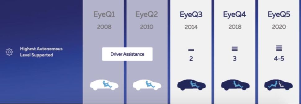 截至2017年底,Mobileye的产品已经被用于27个整车厂的313款车型,当年出货量870万颗。2017年3月英特尔以153亿美元收购Mobileye,打造英特尔车队。车队将包括各种汽车品牌和车型,以展示其多功能性和适应性。L4级车辆将被部署在美国、以色列和欧洲进行测试。