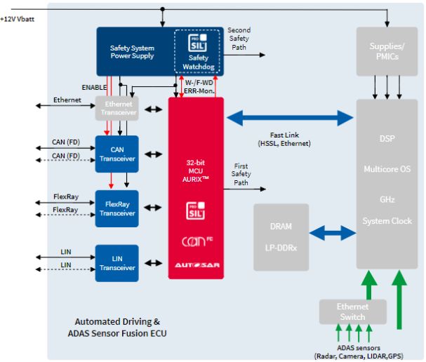 ▲ 英飞凌Aurix自动驾驶控制器架构图