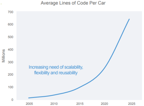 ▲ 汽车搭载的代码行数指数级增长