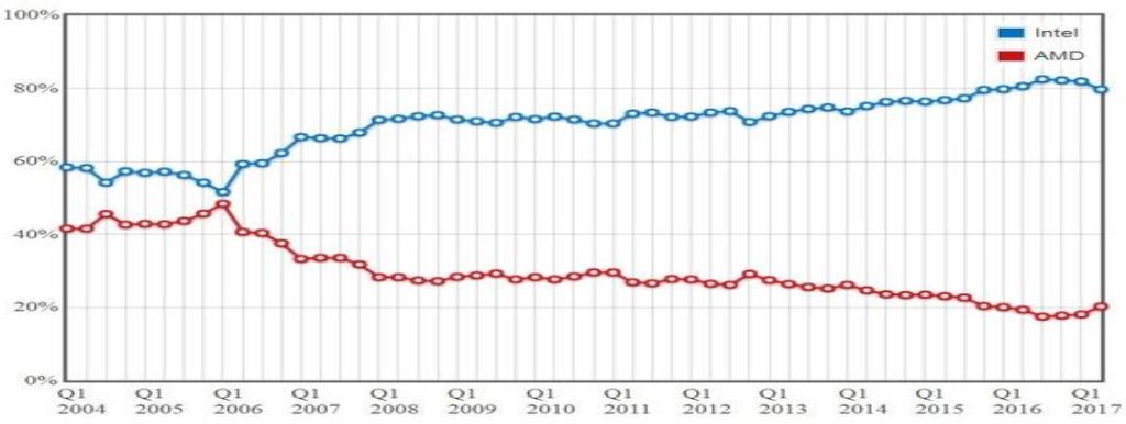 ▲ 全球CPU市场份额(2004-2017)