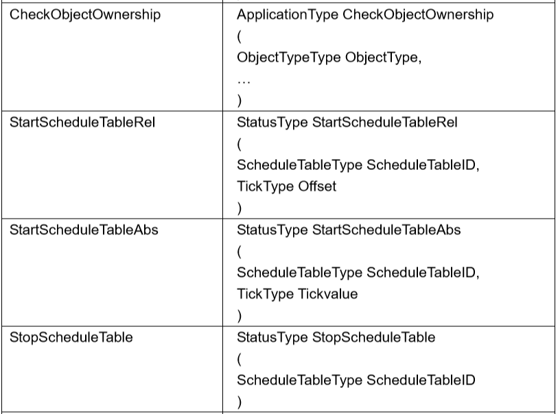 AUTOSAR OS 对 OSEK OS 扩展的 API 如下表