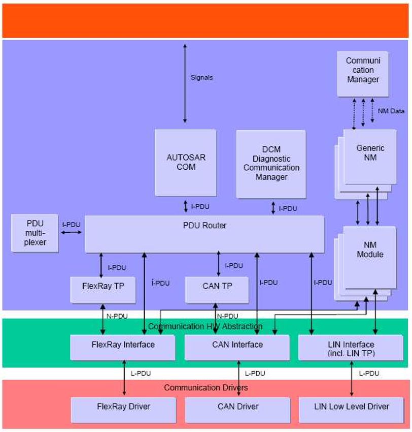 AUTOSAR COM 层位于 RTE 和 PDU 路由器之间。它来源于 OSEK_COM 标准。AUTOSAR COM 提供了信号网关功能。