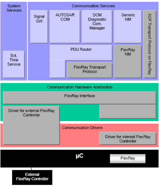 · 为了访问 FlexRay 通信控制器,FlexRay 接口使用一个或多个 FlexRay 驱动模块;